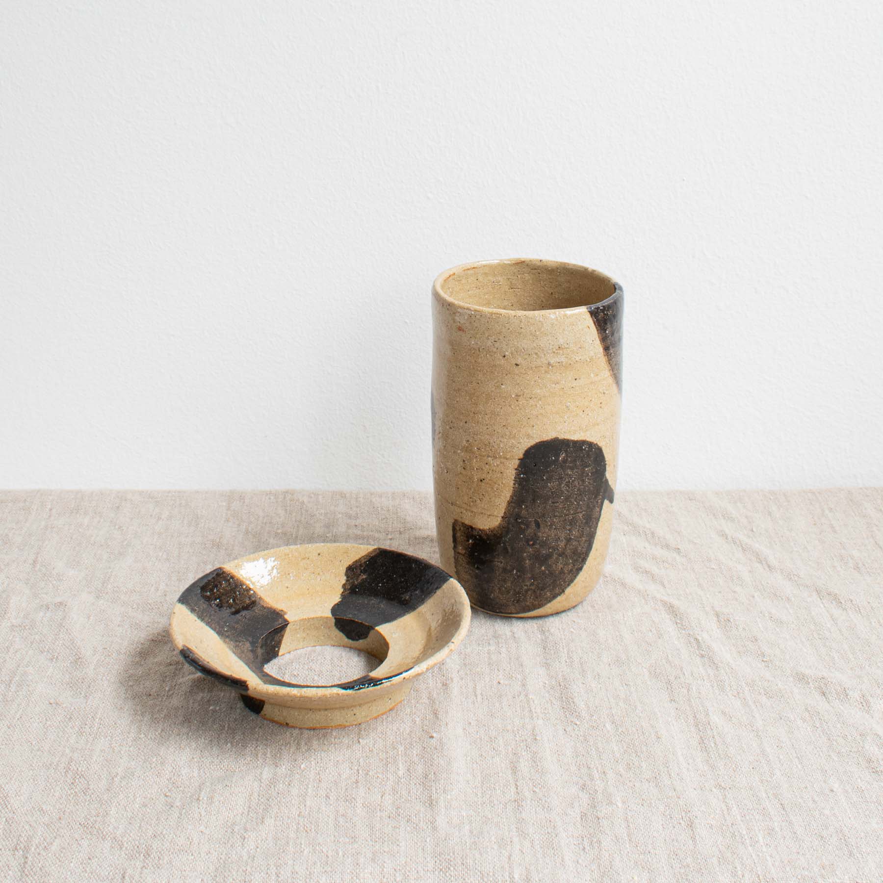 Two part vase handcrafted from Cornish clay. The vase can be used without the topper for a larger bunch or using the narrower topper to keep the stems upright.